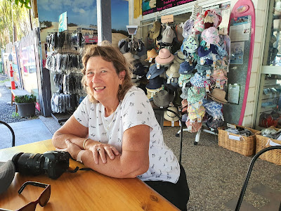 We were seated out on the deck and the got to choose from the delicious menu of fresh meals, desserts, and fresh juices featuring their locally sourced ingredients which is prepared fresh daily in their kitchen. We all chose to share a treat with John and Barb choosing cheesecake, Ian and Kathy a vanilla slice and Steve and I, a beautiful nut and fruit bread made on the premises and which we requested to be toasted. It was totally delicious.. A couple of us choose their beautiful fresh fruit drinks, Steve chose hot chocolate, whilst Ian and Kathy chose a coffee and John a cup of tea.