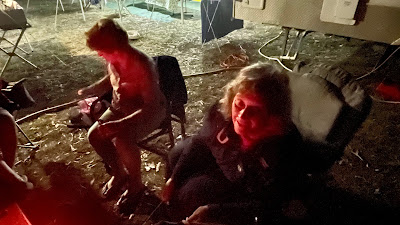 Once again the cold weather turned cold while we were having dinner, although thankfully not as cold as the previous night. Or maybe the fact that we already had a fire burning, it at least didn't feel quite as cold as the previous evening.... We all contributed to dinner this evening, but once it was finished and we had cleared up, we all made a beline to the camp fire which we set up on the site next to Ian and Kathy,,