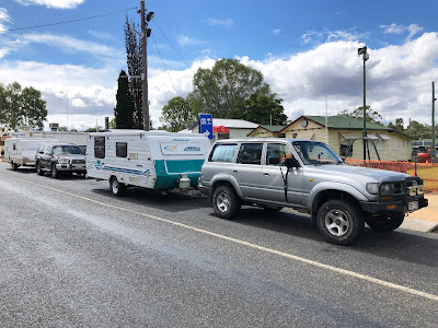 Being a Friday, the town wasn't too busy so we were able to park in the main street and walk up to the little CWA park where we proceeded to set up for morning tea. Steve did have one local indigenous resident that really wasn't too happy that we had parked in the main street, but we weren't too sure where else she would have a park and in the end we just left the car and van there as we were parked within a couple of parking spaces.
