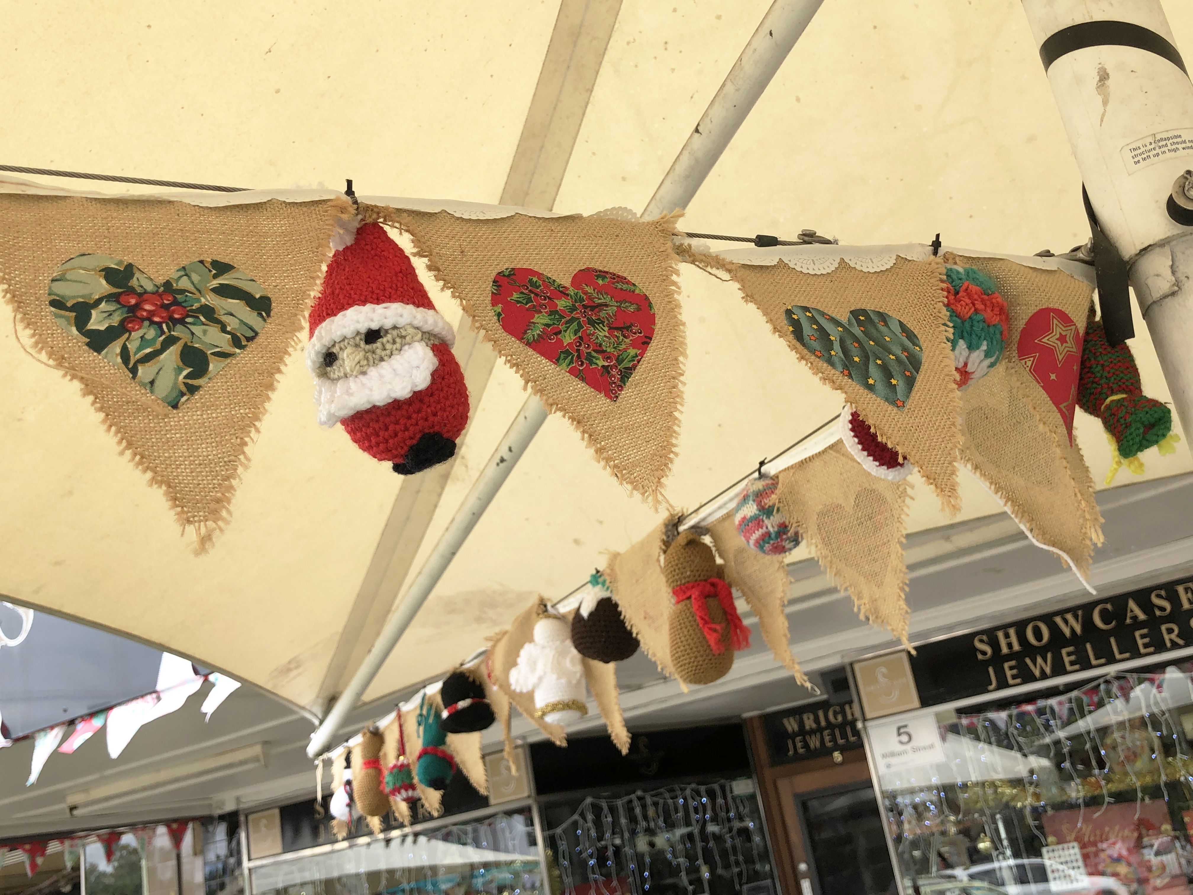 Benches covered in red, white and green knitting, light poles covered in crochet, and thousands of metres of bunting have created a popular attraction for a small community trying to lift spirits after a hard 12 months.
