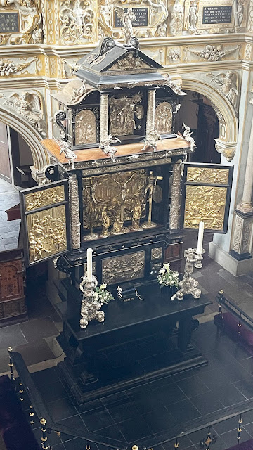 The other gem within the Chapel is the beautiful Compenius organ. It was built in 1610 by Esajas Compenius and it's the oldest organ in Denmark. It was a gift to Christian IV in 1617 when the chapel was consecrated. Despite it's proximity to the great fire, the original wooden pipes were preserved. Wooden pipes are something of a rarity to see in organs, since many were modernized with metal pipes, so it really is a show-piece.
