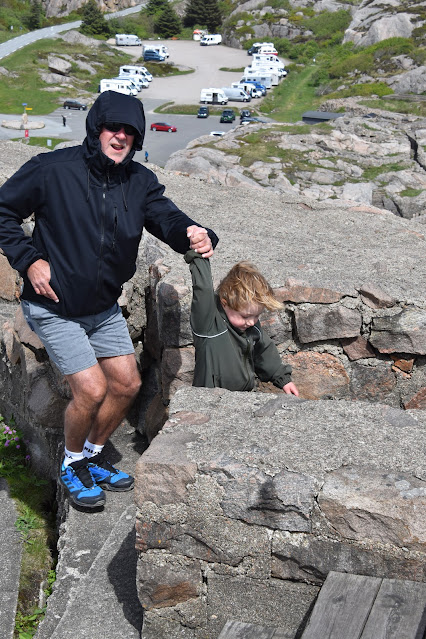As I'm a little slow on the stairs, and as I also love to just stop and take in the amazing views, Pete Maria and the boys went ahead..Rising above the cape is the evocative Lindesnes Fyr, a classic lighthouse, and as we climbed higher towards the lighthouse, the rugged coastline was fully put into it's right perspective. The views were amazing and there was massive rock coastline for as far as the eye could see...