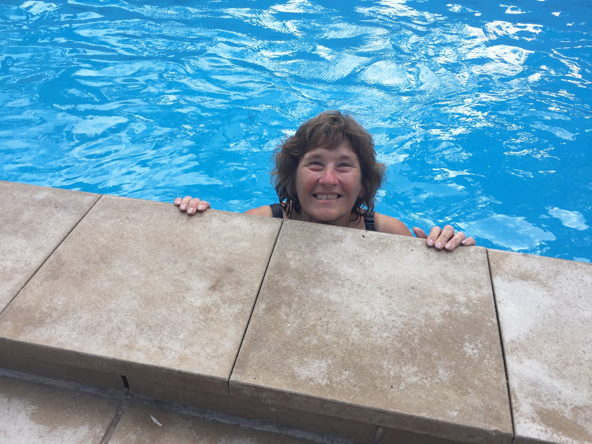 It was quite hot, so I finally managed to convince Steve that we needed to have a dip in the beautiful pool here at the park before we headed out to explore the surrounds. The water in the pool was really quite cold, but we enjoyed the swim, we spent more time doing stretches etc. We were only in the pool for about half an hour…